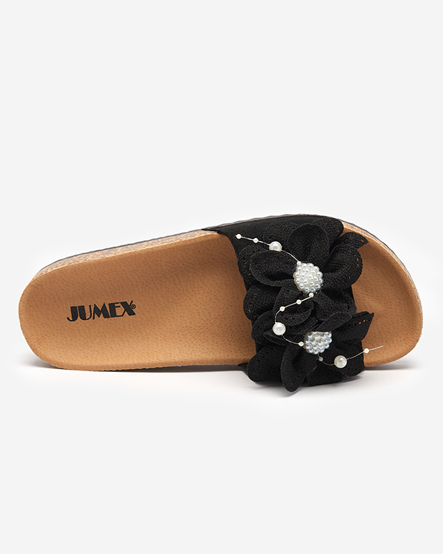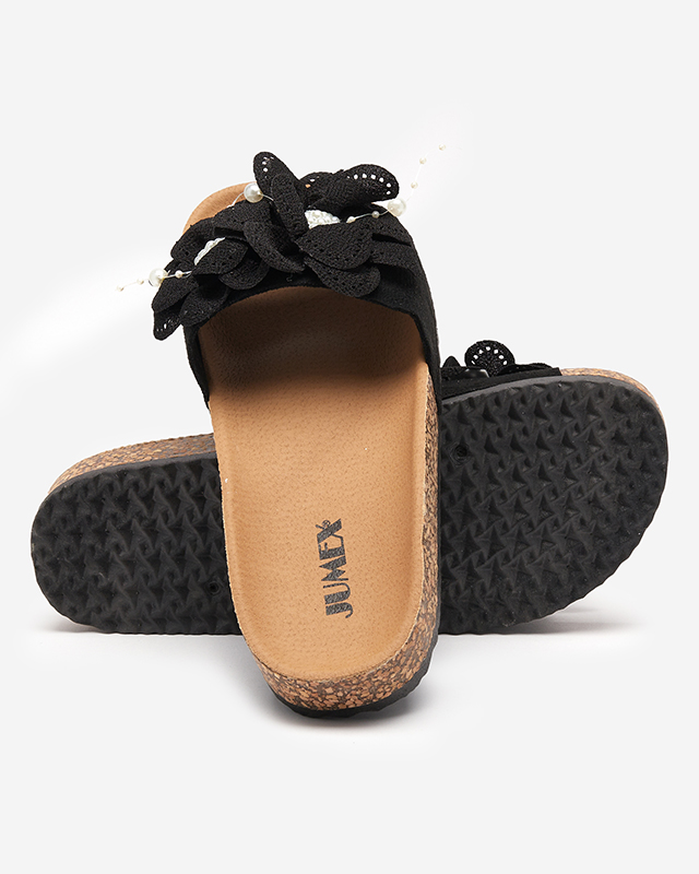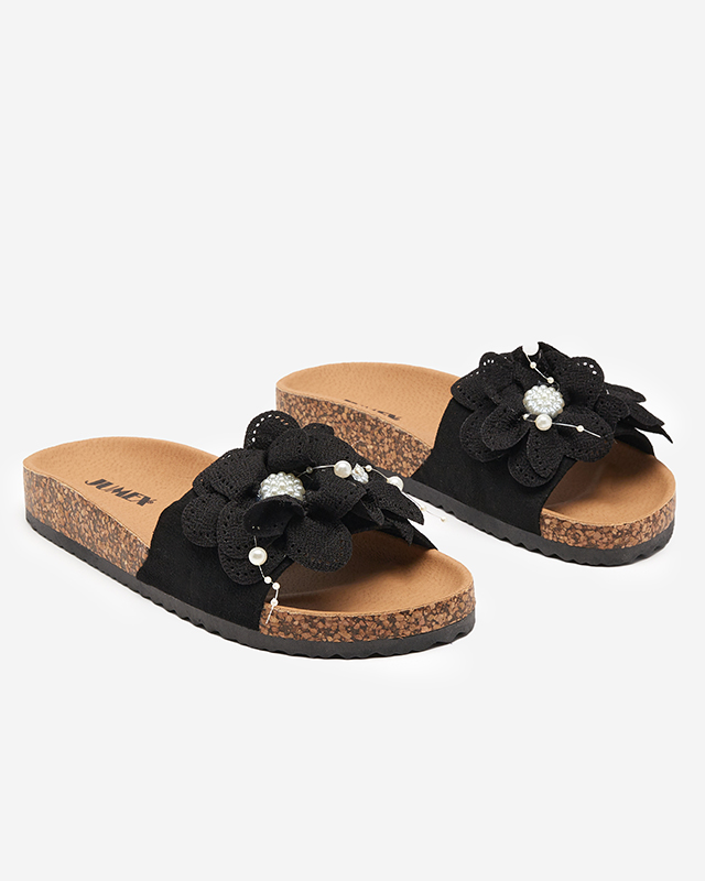 OUTLET Čierne dámske papuče s látkovými kvetmi Serine - Obuv
