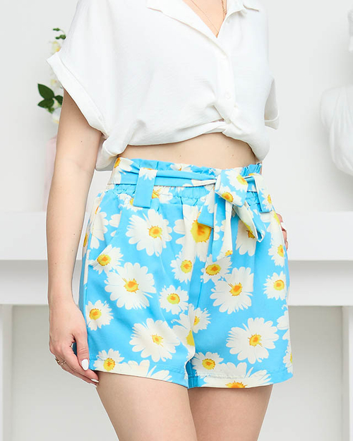 Dámske modré šortky s kvetinovým vzorom z látky - Oblečenie