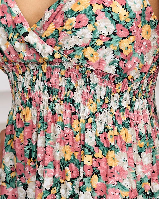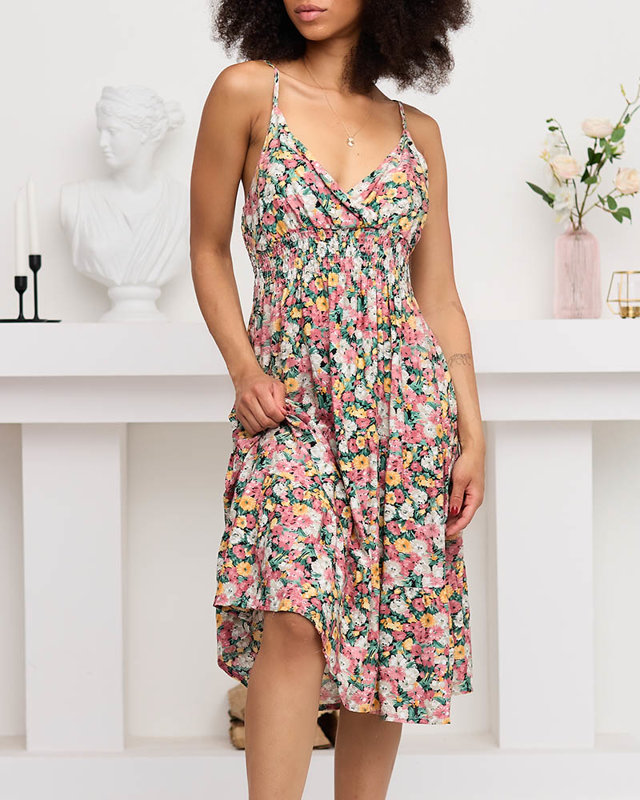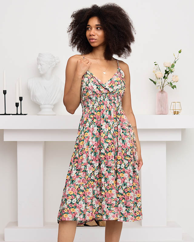 Žlto-ružové dámske letné šaty s kvetmi - Oblečenie