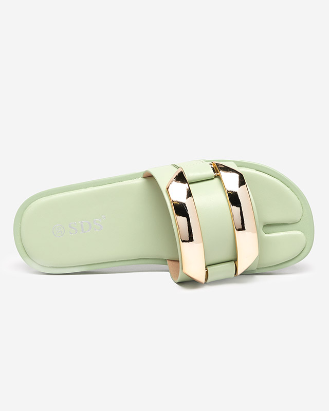 Zelené dámske papuče s veľkým zlatým ornamentom Kedino - Obuv