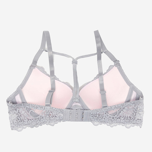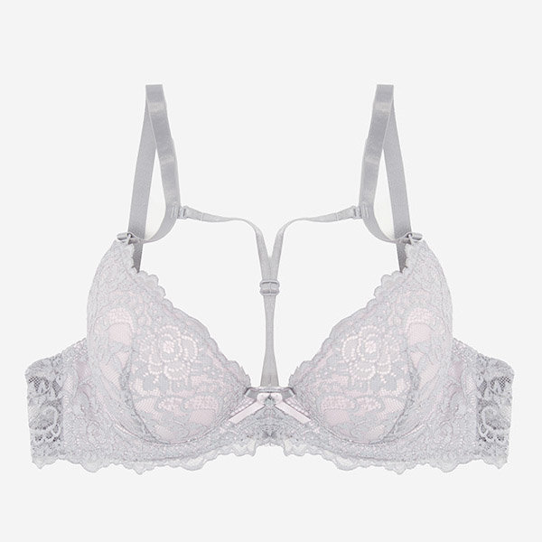 Sivá a ružová čipkovaná podprsenka s ramienkami - Spodná bielizeň
