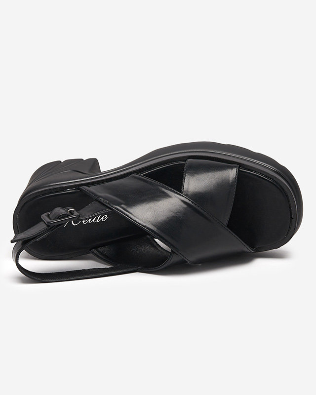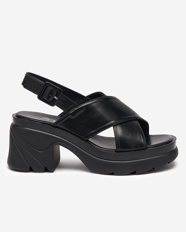 Čierne dámske sandále na hrubom stĺpiku Feine - Obuv