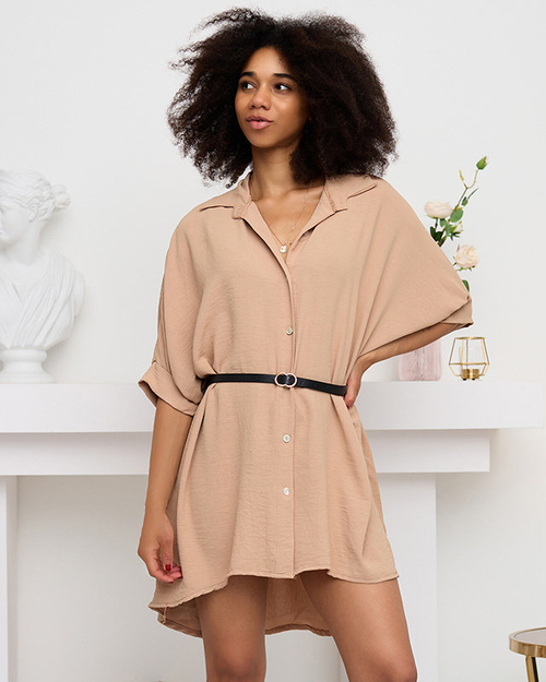 - Klasická dámska tunika košeľového typu s golierom a zapínaním na gombíky. Súprava obsahuje úzky opasok zvýrazňujúci pás. Oversize strih pristane každej postave! POZNÁMKA: Presnosť merania (+/-) 1 cm.