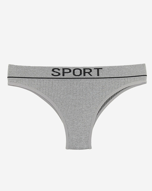Šedé dámske rebrované nohavičky so športovými nápismi - Spodná bielizeň