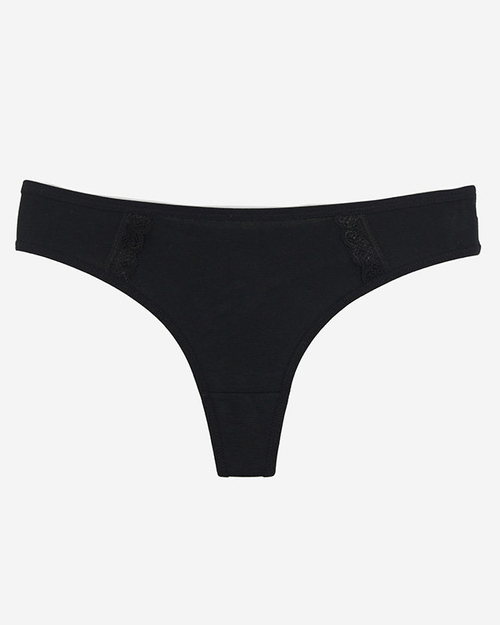 Čierne bavlnené dámske tangá nohavičky s čipkou - Spodná bielizeň