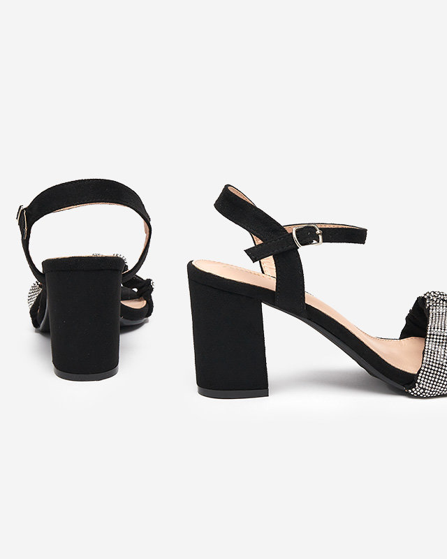 Čierne dámske sandále na stĺpiku s kubickými zirkónmi Trieste - Obuv