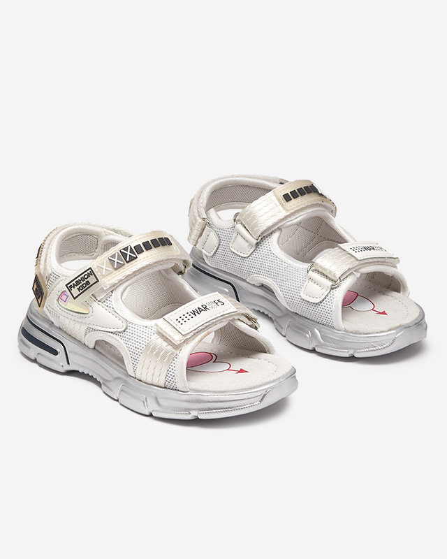Bielo-strieborné detské sandále na suchý zips Mepoti - Obuv