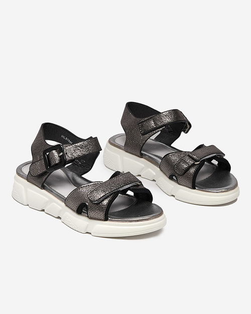 Grafitové lesklé dievčenské sandále Jenilo - Obuv