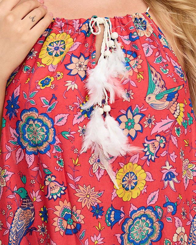 Dámska červená vzorovaná pelerína šatového typu - Oblečenie
