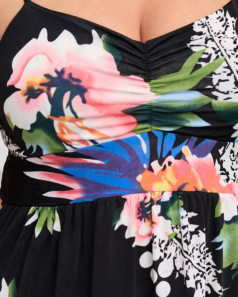 - Šaty po kolená s kvetinovým motívom. Model voľného strihu, v páse má výstrih na gumičku a nastaviteľné ramienka. Perfektné letné šaty! POZNÁMKA: Presnosť merania (+/-) 1 cm.