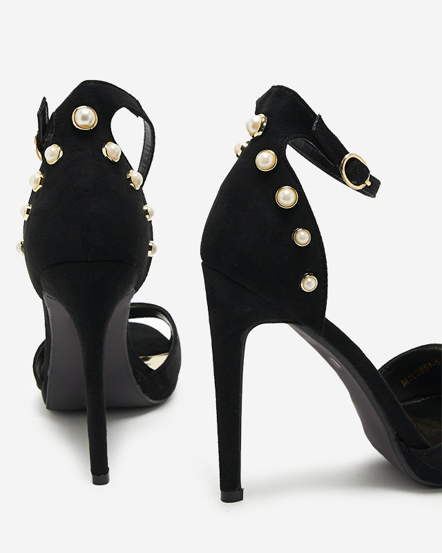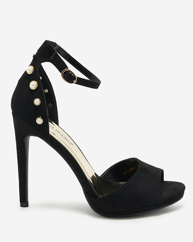 Dámske čierne sandále na ihličkovom podpätku eko semiš Sariel - Obuv