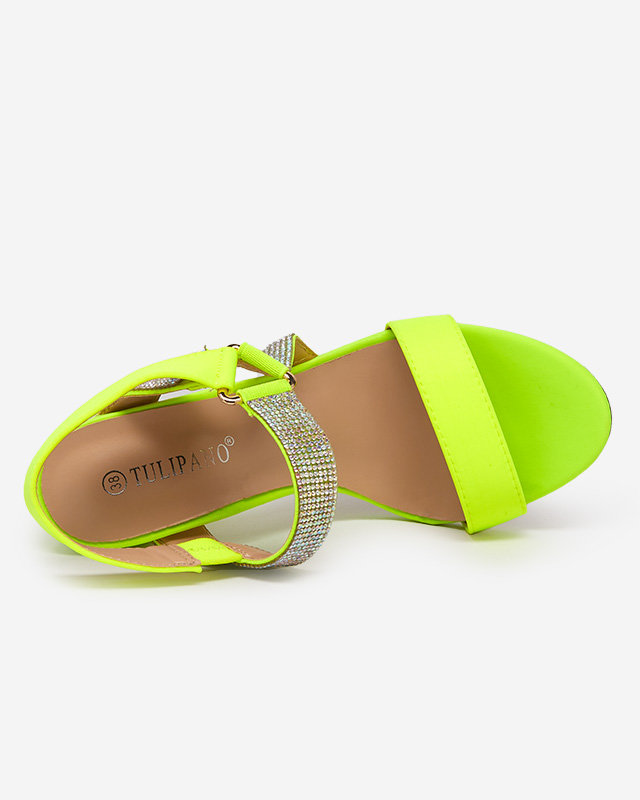 Neónovo žlté dámske sandále na stĺpiku Xiobi. Obuv