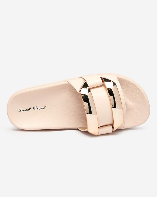 Dámske béžové papuče so zlatým ornamentom Serina - Obuv