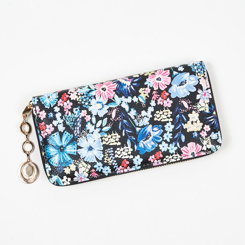 - Kvetovaná dámska peňaženka vyrobená z ekologickej kože so zapínaním na zips. Model má: - 2 priehradky, z toho 1 vrecko na zips na mince, - 10 vreciek na platobné karty alebo iné doklady.