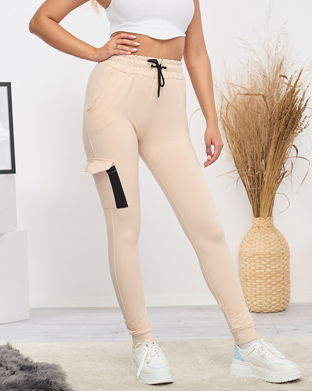 • Dámske tepláky z bavlnenej látky. Model s 3 vreckami, má gumičku a šnúrku v páse, nohavice ukončené širokými elastickými gumami. Presnosť merania (+/-) 1 cm.
