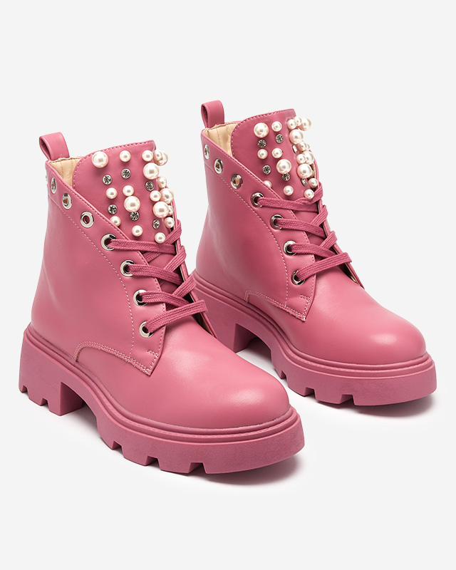 Ružové dámske čižmy s perličkami Orilco - Obuv