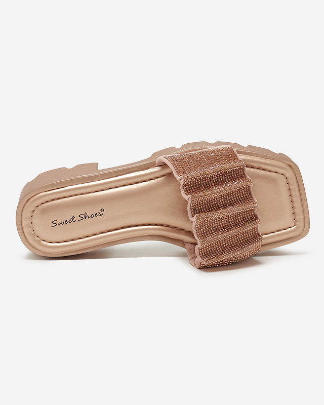Zlaté dámske papuče s kubickými zirkóniami Emkoy - Obuv