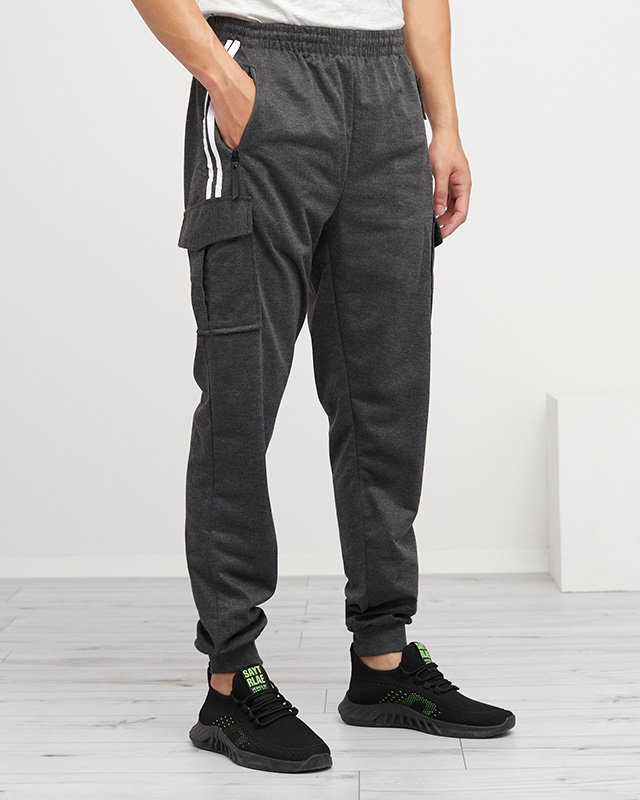 - Pohodlné pánske tepláky vyrobené z elastického materiálu. Manžety na nohách, elastický pás a šnúrky. Model má pruhy, vrecká na zips a dve ďalšie na bokoch. POZNÁMKA: Presnosť merania (+/-) 1 cm.