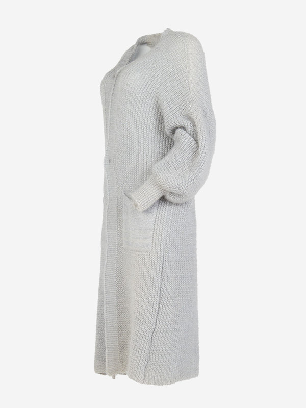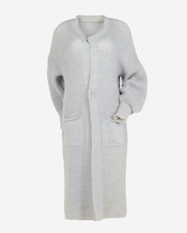 Dámsky svetlosivý sveter z mäkkého dlhého kardiganu – oblečenie