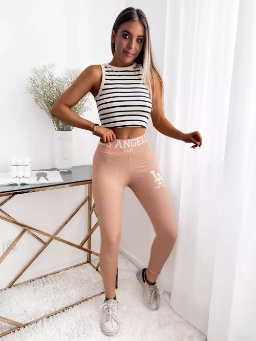 Dámske púdrové rebrované legíny s nápismi - Oblečenie