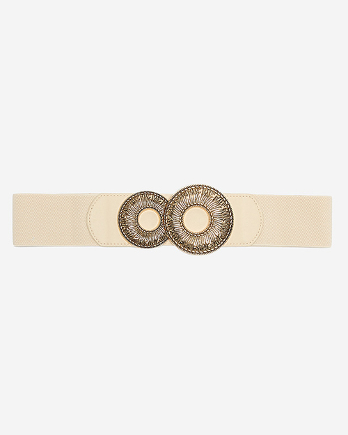 Béžový elastický opasok s veľkou zlatou prackou - Doplnky