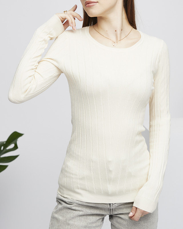 Béžový dámsky sveter s okrúhlym výstrihom - Oblečenie