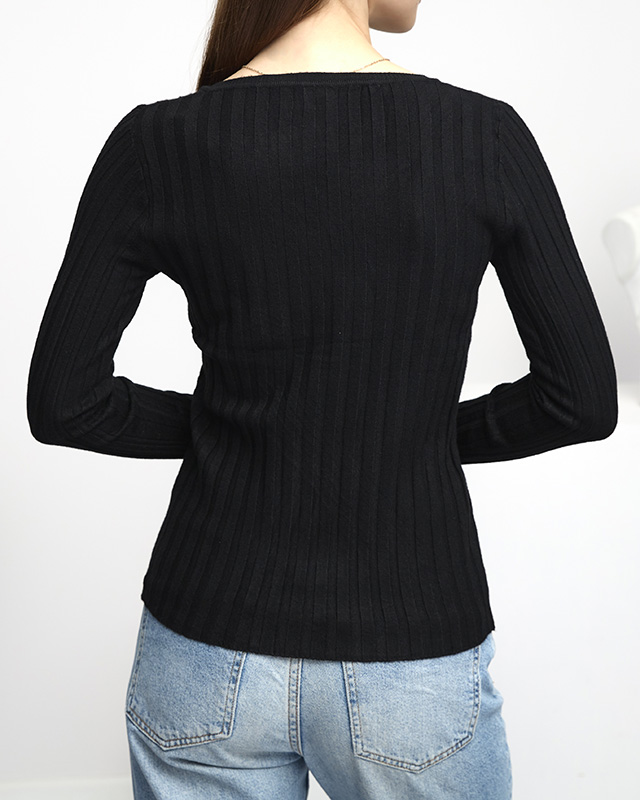 - Klasický dámsky sveter z mäkkej a elastickej rebrovanej látky. Produkt má dlhé rukávy a výstrih do V. Skvelý doplnok k vašim ležérnym outfitom! POZNÁMKA: Presnosť merania (+/-) 1 cm.