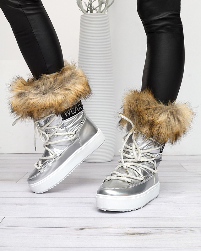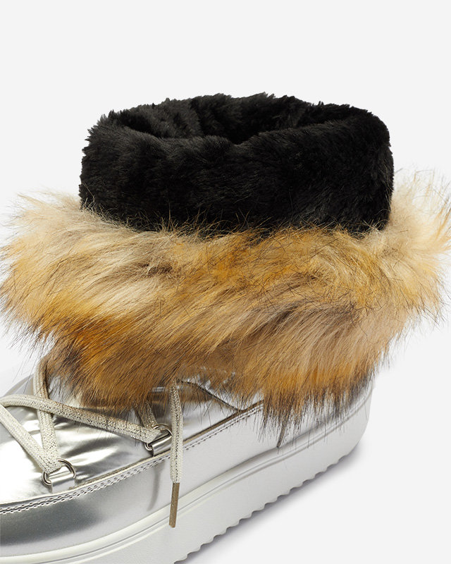- Jedinečné dámske snehule na platforme. Zvršok je vyrobený z kombinácie ekokože a plastu a'la cerata, uprostred je kožušinová izolácia. Model sa nazúva a má na zvršku kožušinku. STRIEBORNÉ ZIMNÉ TOPÁNKY ZATEPLENÉ SNEHULE FURSAV