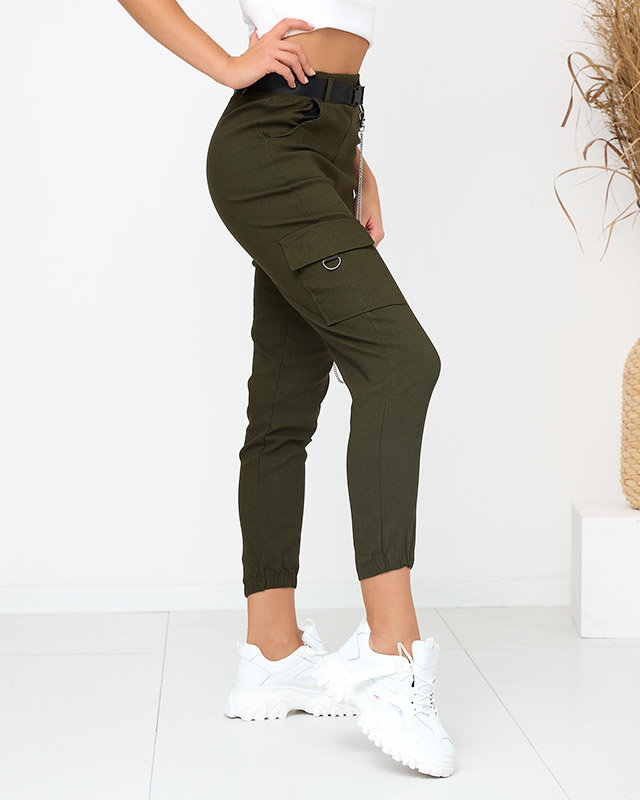 • Jedinečné dámske látkové cargo nohavice vyrobené z pružného materiálu. Model má široký elastický pás a 4 vrecká. Výrobok je zateplený tenkým rúnom. Navyše opasok a reťaz! POZNÁMKA: Presnosť merania (+/-) 1 cm.