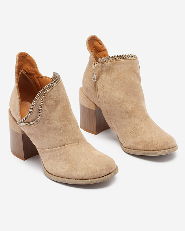 - Dámske čižmy na hrubom stĺpiku, vyrobené z mäkkého eko semišu. Vnútro je podšité látkou, zatiaľ čo stielka je vyrobená z ekokože. Ozdobné výrezy na bokoch a zapínanie na zips. Túto sezónu musíte mať! SVETLOHNEDÉ NEPOVODENÉ TOPÁNKY MUKIS ČIŽMY