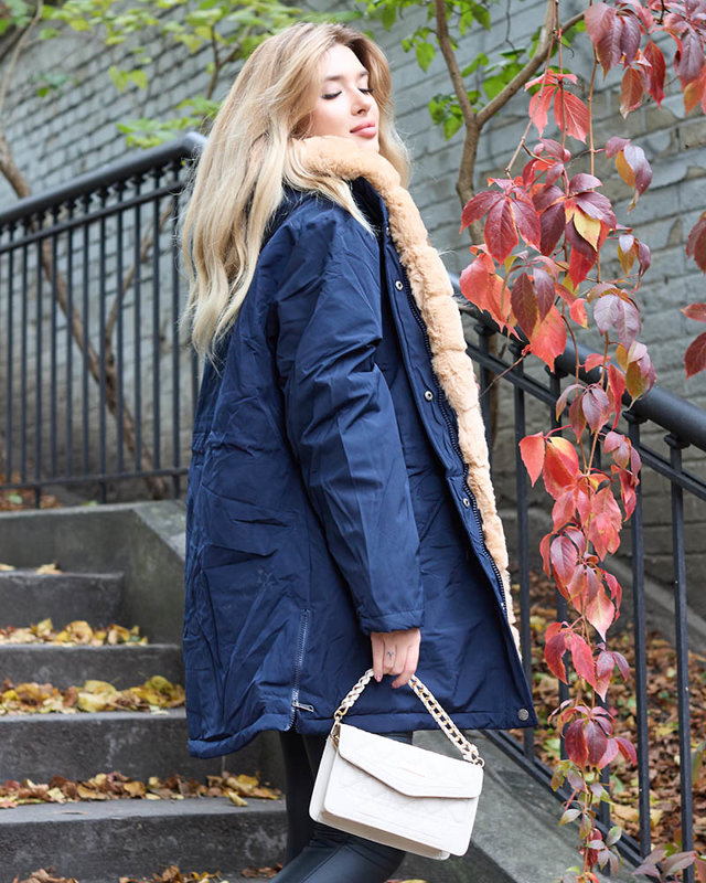 Dámska tmavomodrá zimná bunda PLUS SIZE - Oblečenie