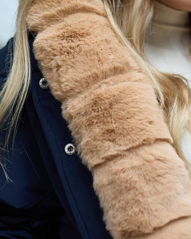 - Teplá dámska zimná bunda s kapucňou a odopínateľnou hrejivou kožušinkou. Bunda sa zapína na zips a gombíky, má 2 vrecká na zips na bokoch a 2 na rukáve - lem v strede. Skvelé na zimné obdobie!