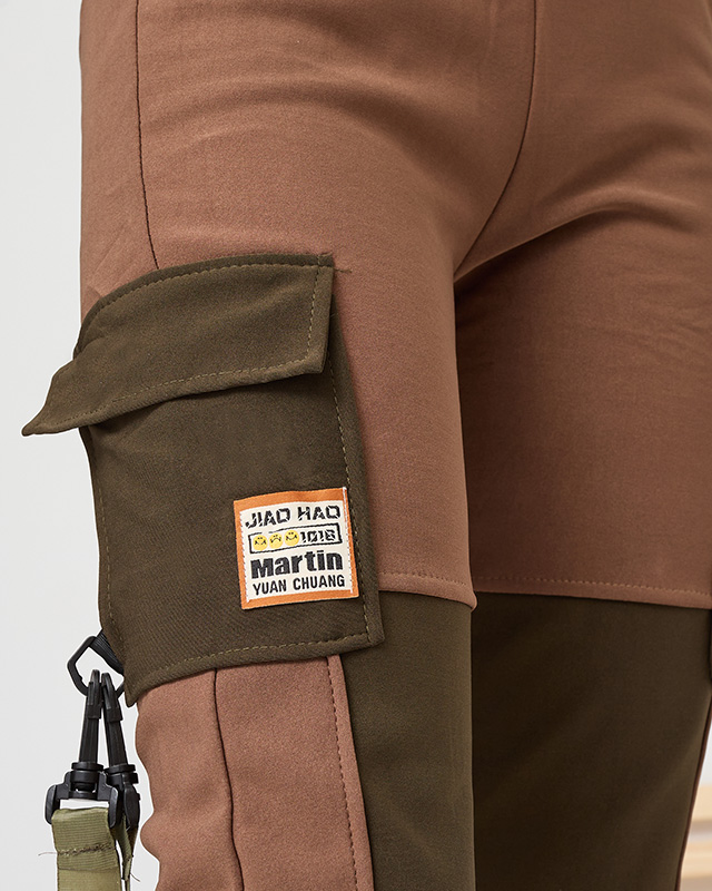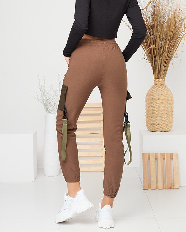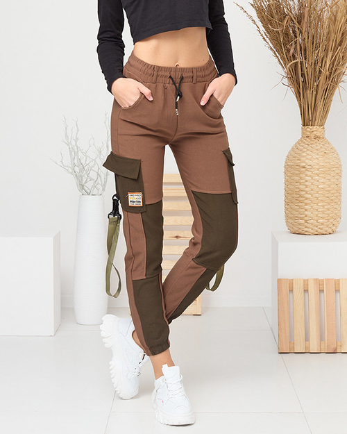Zateplené dámske cargo nohavice v hnedej farbe- Oblečenie