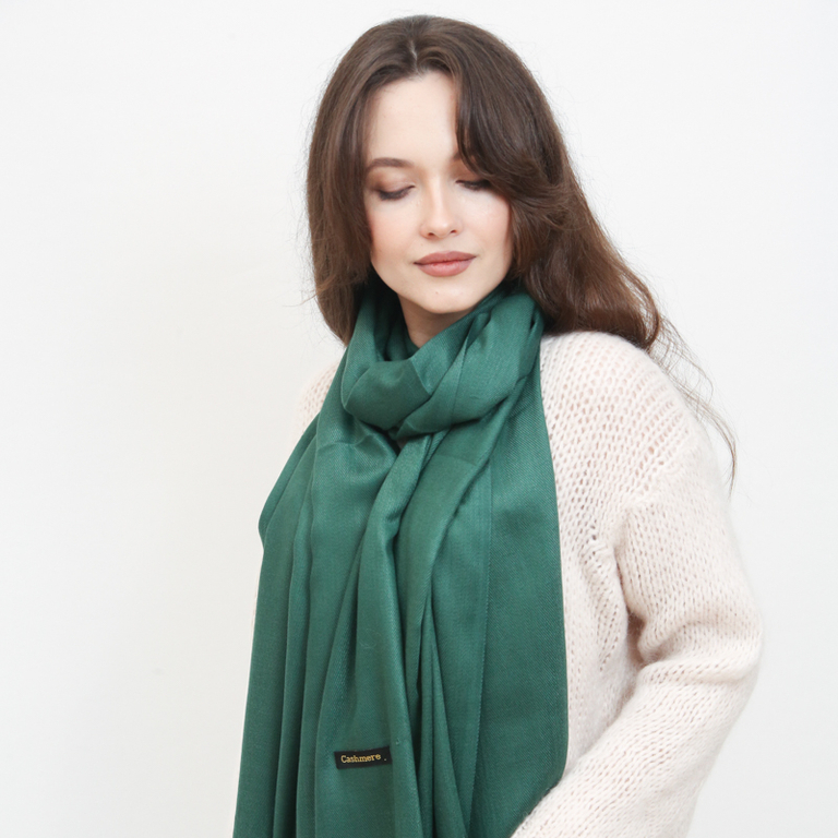 Tmavo zelená veľká dámska šatka so strapcami - Doplnky