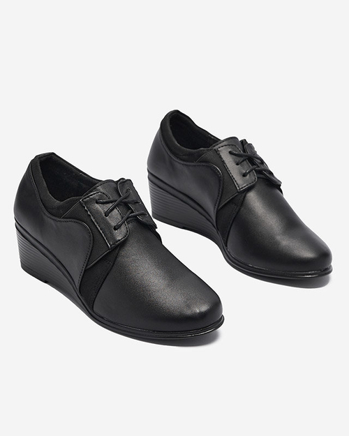 OUTLET Čierne dámske poltopánky na podpätku so šnurovaním Cteria - Obuv