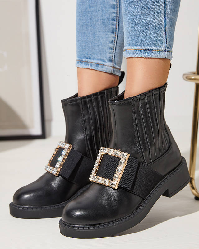 Čierne dámske členkové čižmy s ornamentom Zenata - Obuv