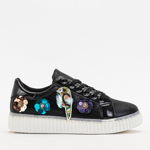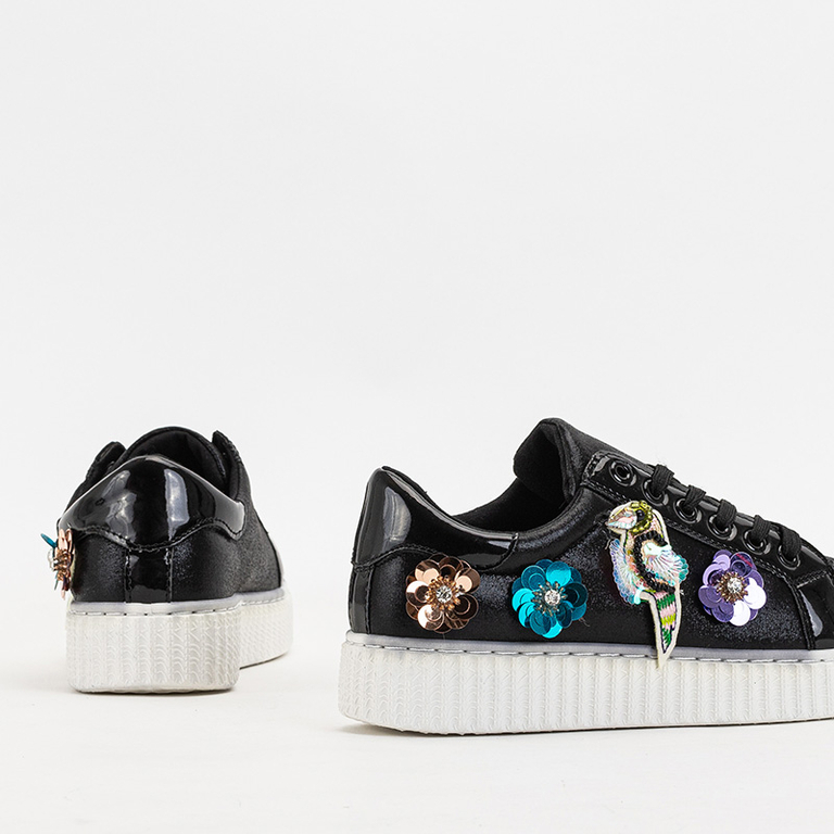 OUTLET Čierne lesklé dámske tenisky s farebnými nášivkami Springso - Obuv