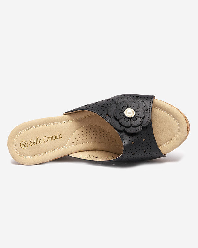 OUTLET Čierne dámske žabky na platformovom podpätku Dombas- Obuv
