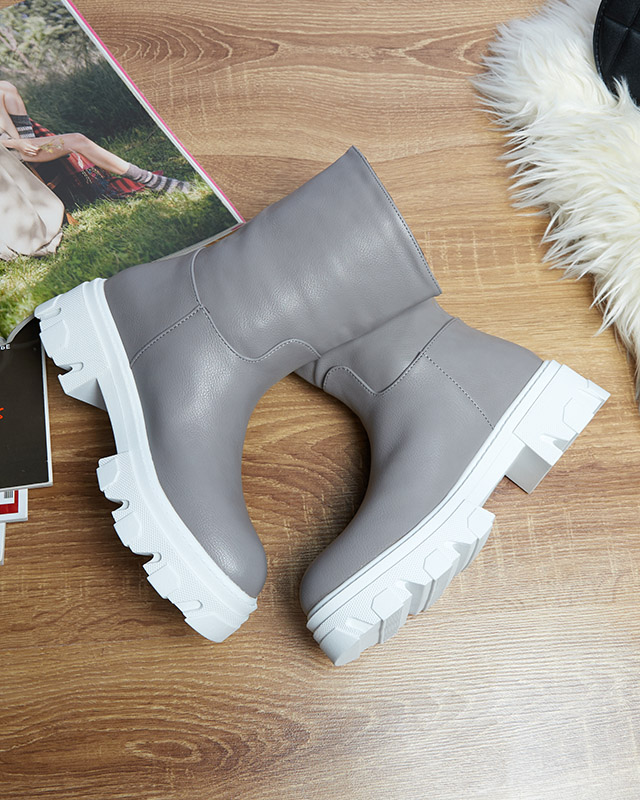 OUTLET Sivé dámske čižmy so zateplením Mekira - Obuv