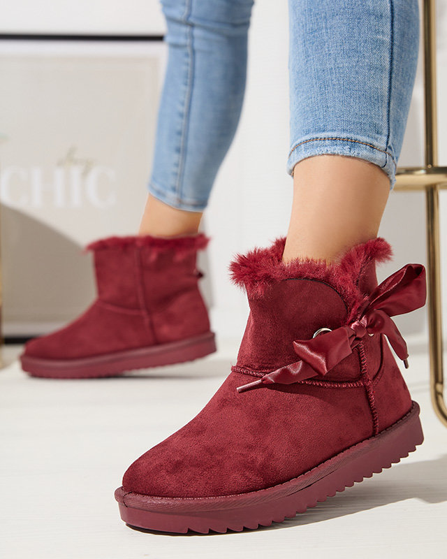 OUTLET Bordové dámske snehové čižmy s mašľou Rimms- Obuv