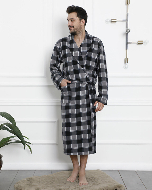 • Dlhý pánsky župan s károvaným vzorom, vyrobený z bavlneného materiálu. Model sa zaväzuje opaskom, má vrecko a vyšší golier. Ideálne na každé ročné obdobie. POZNÁMKA: Presnosť merania (+/-) 1 cm.