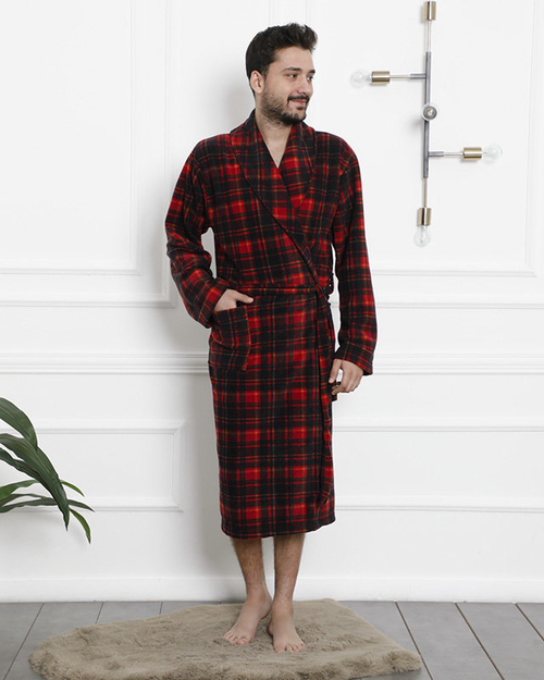 Červeno-čierny károvaný pánsky župan - Oblečenie