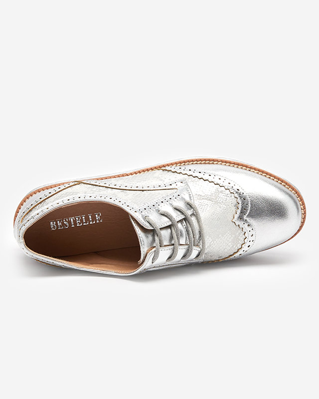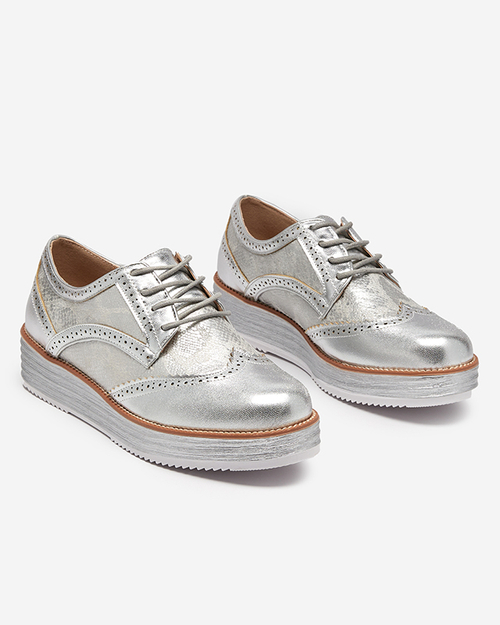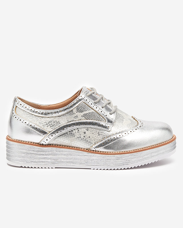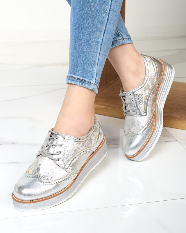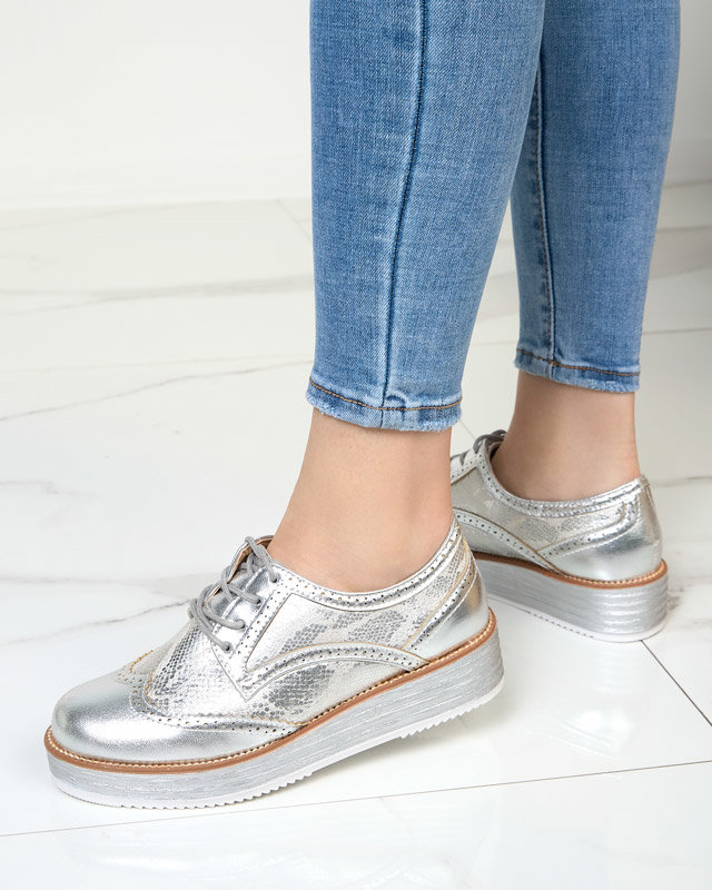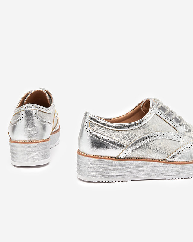 OUTLET Strieborné dámske poltopánky s vložkami a'la hadia koža Fin - Obuv