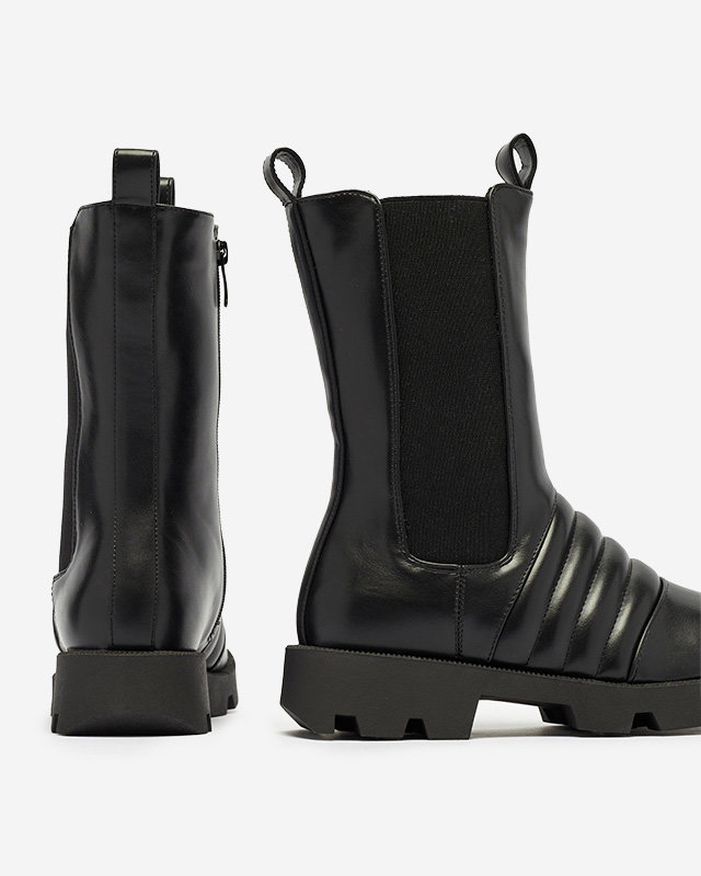 OUTLET Vysoké čierne dámske čižmy na hrubšej podrážke Ferita- Obuv