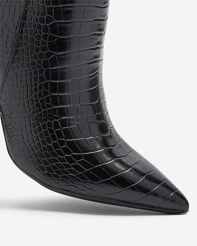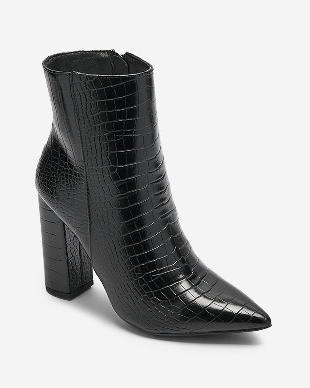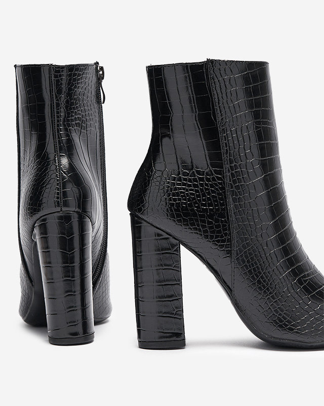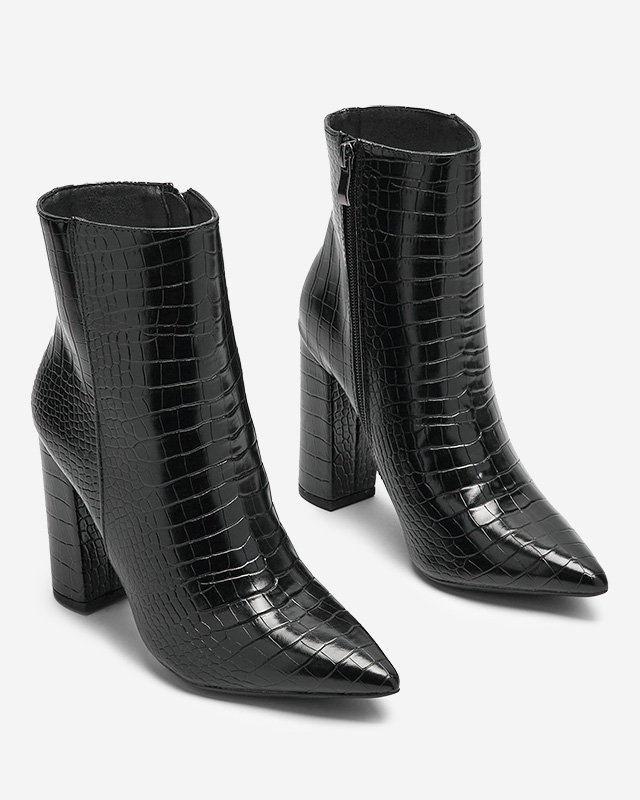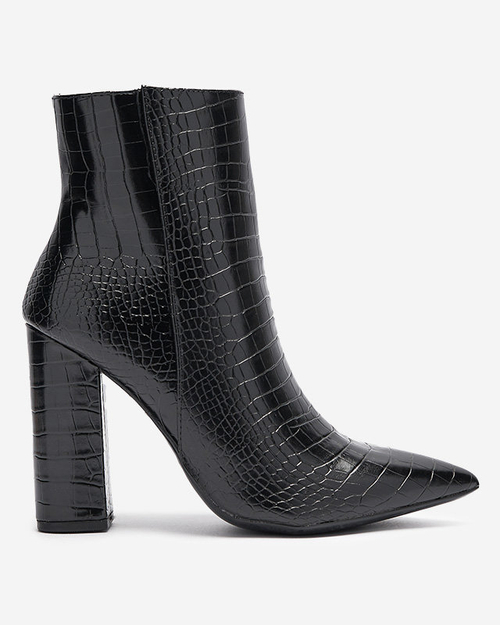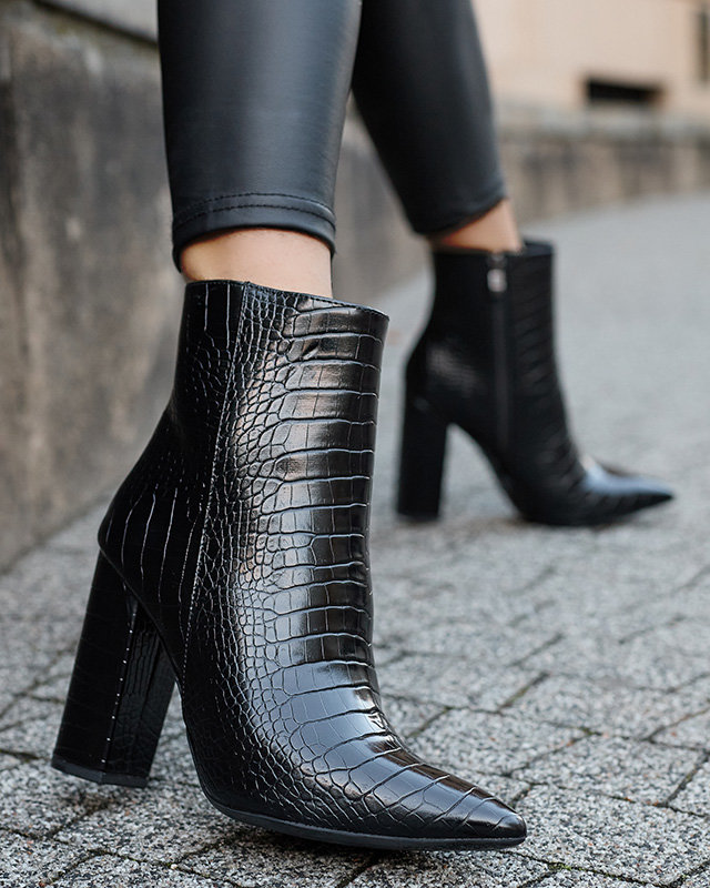 • Mega štýlové dámske čižmy na podpätku z ekologickej kože. Zvršok je zdobený reliéfom. Pár sa zapína na zips na boku. Super doplnok k vašim ležérnym outfitom! Poznámka: výrobok má na materiáli stopy lepidla.