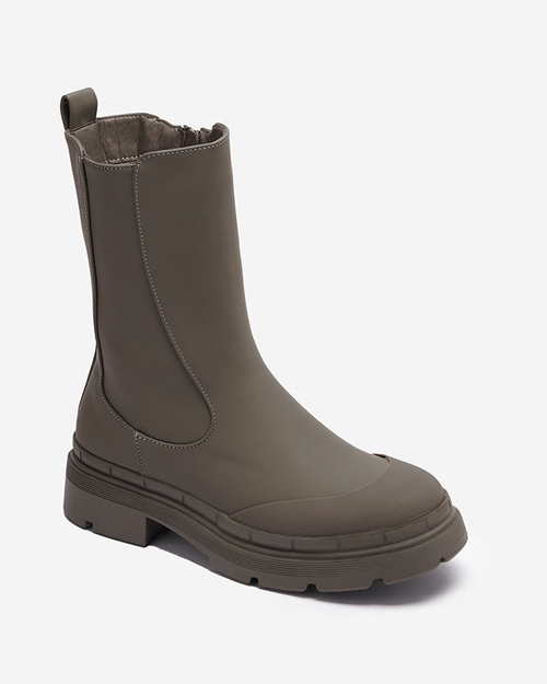OUTLET Dámske zateplené vysoké čižmy v khaki farbe Jori - Obuv