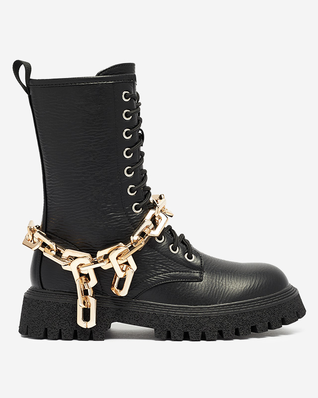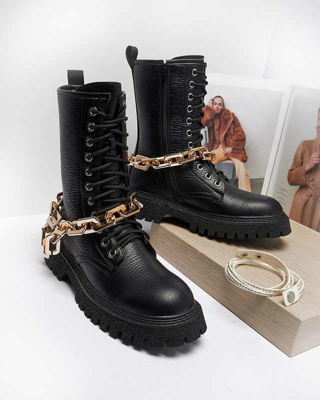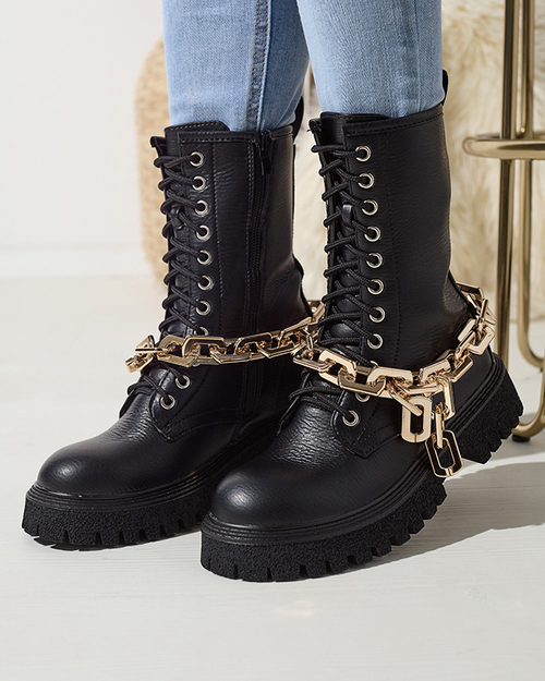 Čierne dámske čižmy so zlatou retiazkou Azerik - Obuv