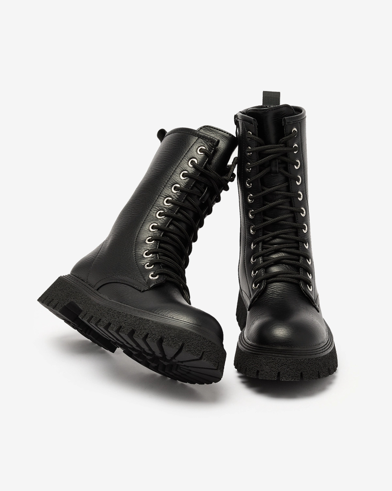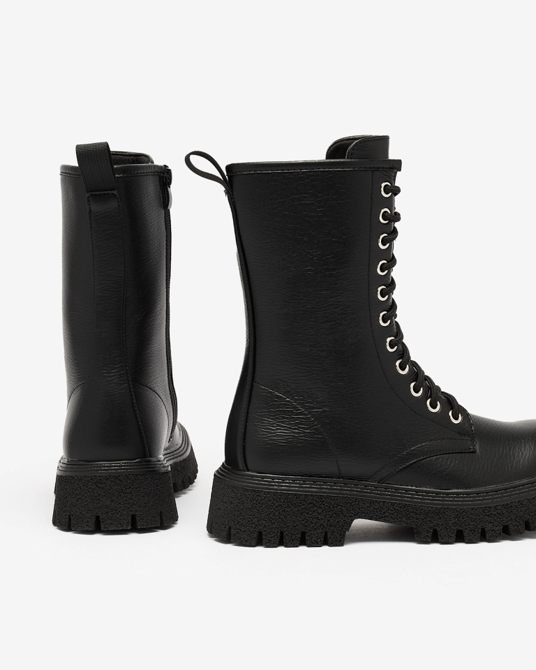 - Klasické dámske vysoké čižmy s plochým podpätkom. Model je šnurovací a zapína sa na zips, s tenkou penou vo vnútri. Okrem toho má pár ozdobu v podobe odnímateľnej zlatej retiazky. BIELE NEZATEPLENÉ ČIŽMY BAGERY AZERIK