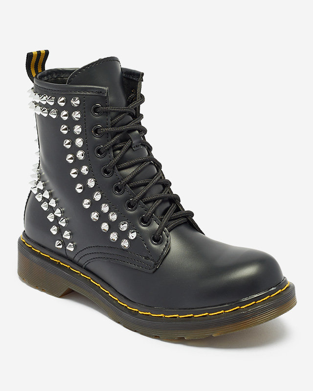 - Dámske čižmy na plochých podpätkoch z eko kože - bez zateplenia, vnútri vložka z ekokože. Zvršok na šnurovanie so zipsom, zdobený cvokmi. ČIERNE WORKERS DÁMSKE TOPÁNKY EKO KOŽENÉ TOPÁNKY OPERIAS