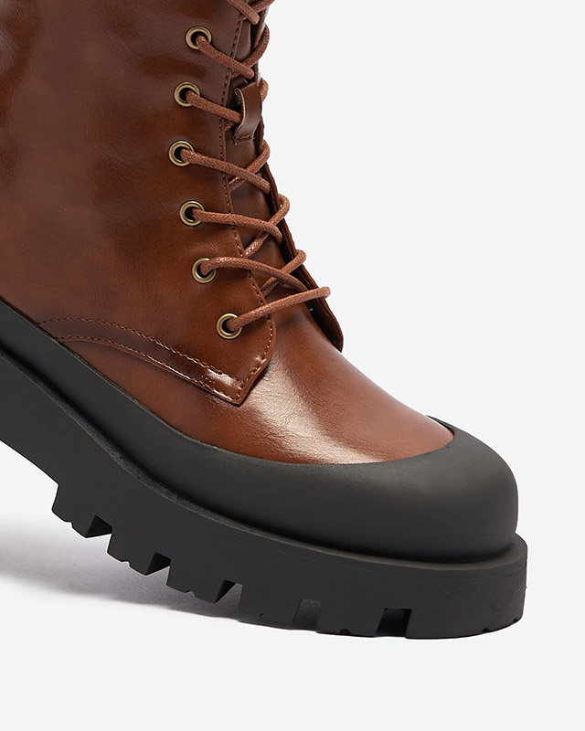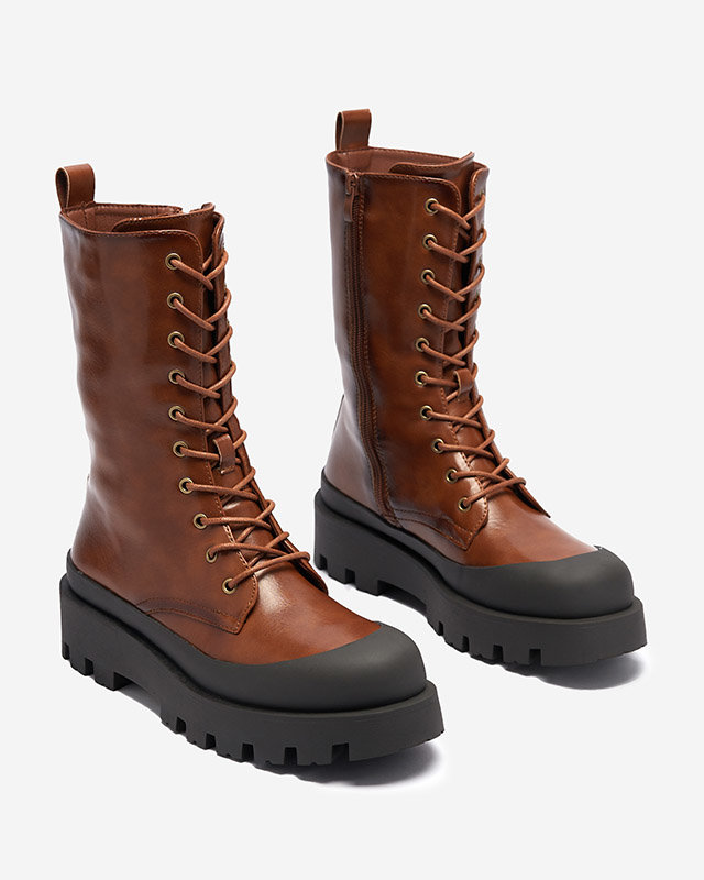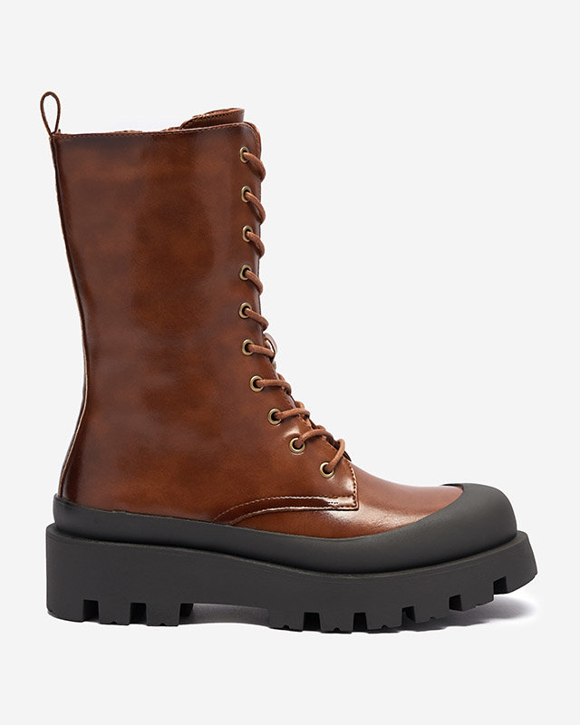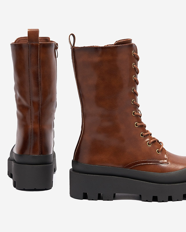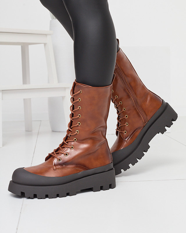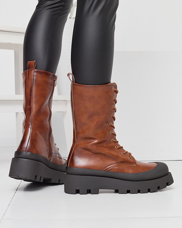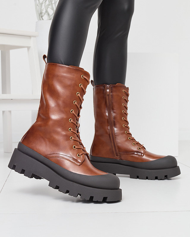 - Klasické dámske čižmy na pevnej podrážke, vyrobené z ekologickej kože. Čižmy sa šnurujú a zapínajú na zips. Vnútro je podšité látkou, zatiaľ čo stielka je z ekologickej kože. Poznámka: výrobok má na materiáli škrabance.